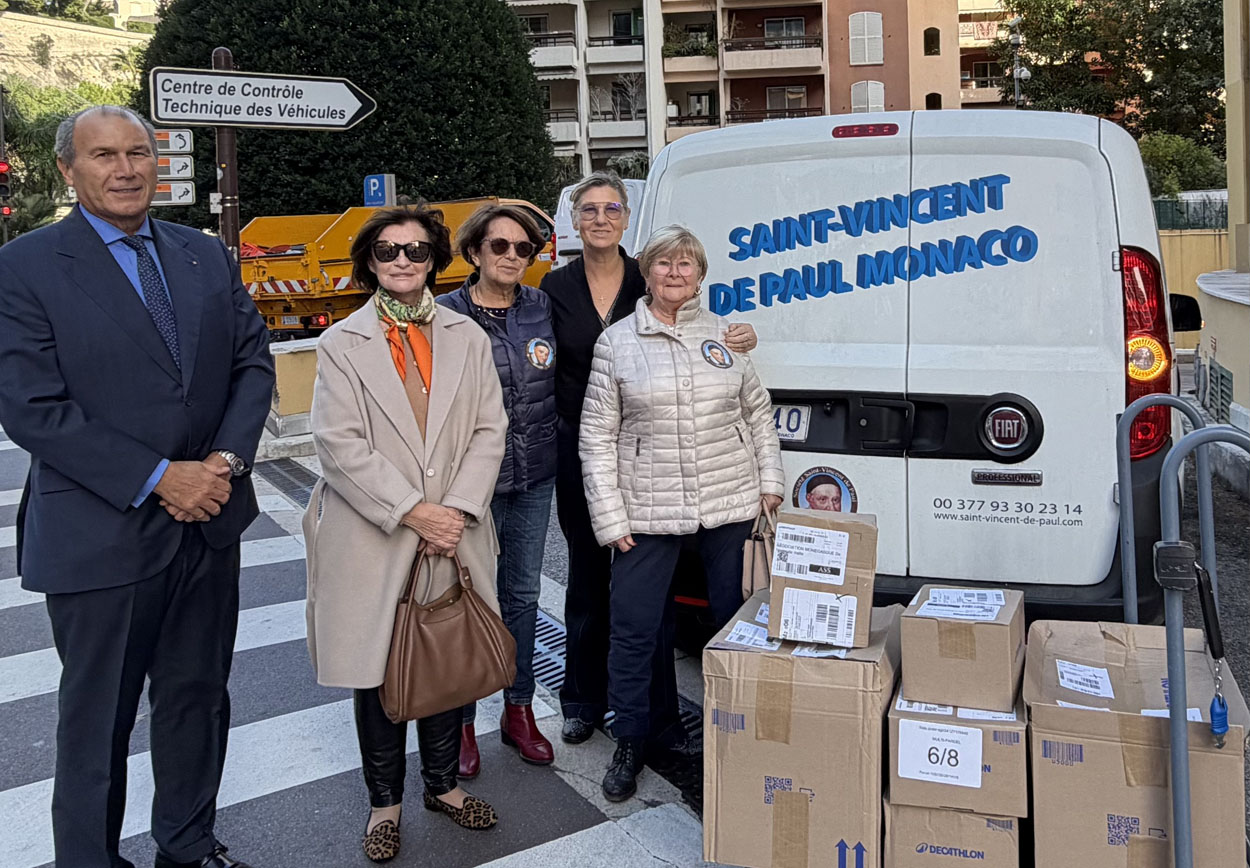 Lundi 10 novembre, le Président et la vice-Présidente de l’Association ont remis ces dons à Madame Marie-Pierre Bergougne, section Saint-Nicolas, et Madame Ariette Crovetto, représentants la Société Saint-Vincent de Paul à Monaco, qui seront distribués aux plus démunis lors d’une maraude de Noël.