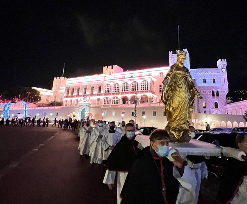 Nombreux Chevaliers de l’Association Monégasque de l’Ordre Souverain de Malte étés présents à la Sainte Messe, suivie par la procession aux flambeaux en l’honneur de la Vierge Marie.
